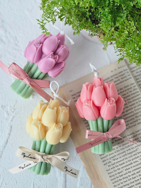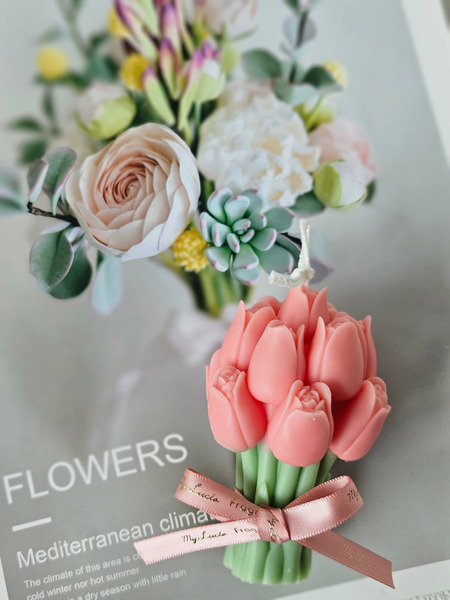 鬱金香花束精油蠟燭|天然香氛 × 可點燃的花束